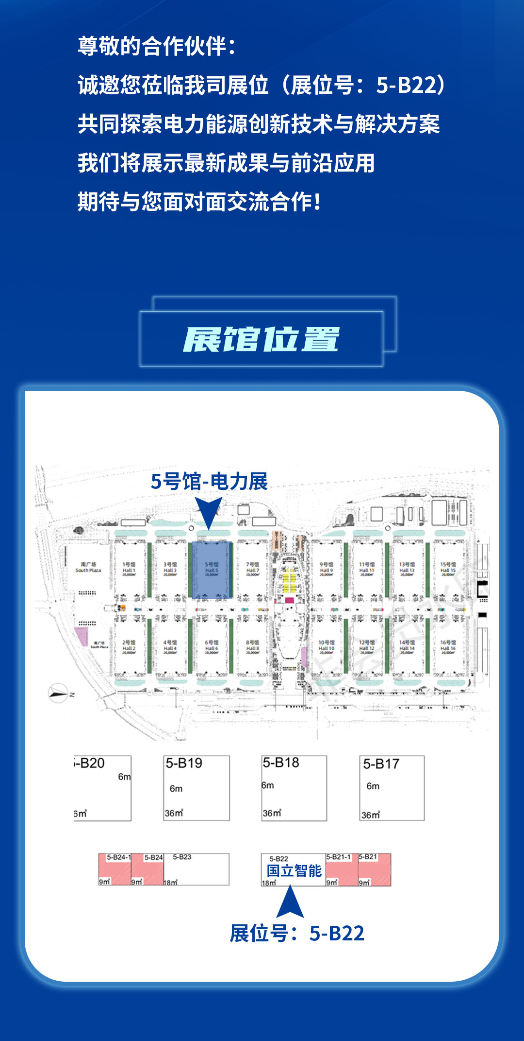 我司展位(展位号:5-B22)共同探电力能源创新技术与解决方案,我们将展示最新成果与前沿应用,期待与您面对面交流合作!